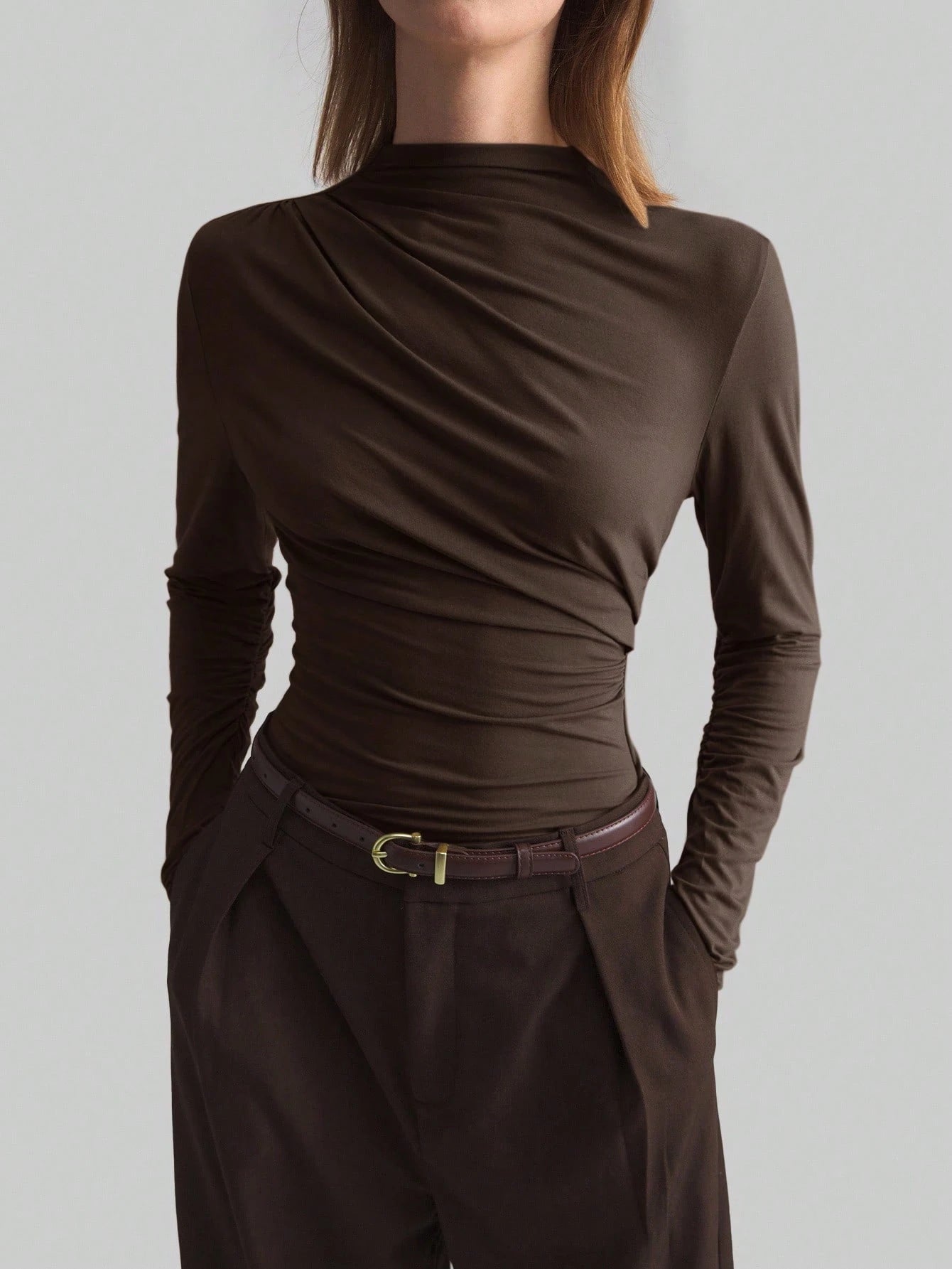 Envy - Store Top Marie Asymétrique à Col Montant™ - Envy - StoreMarronS